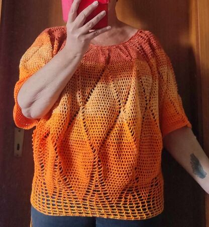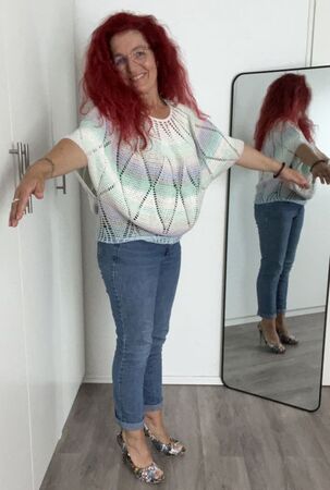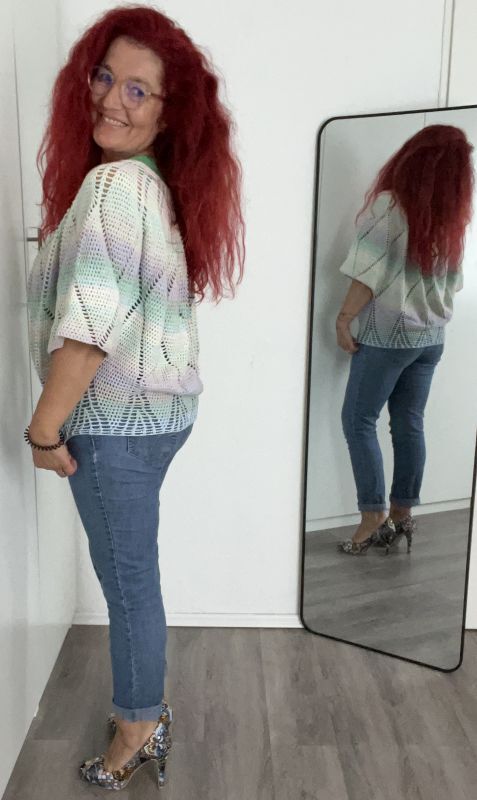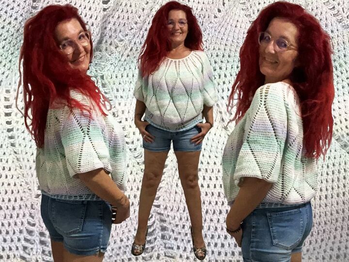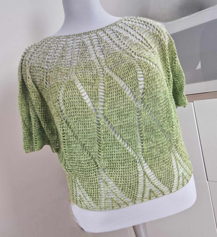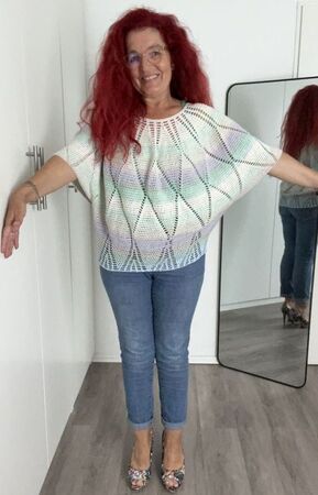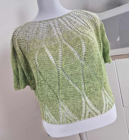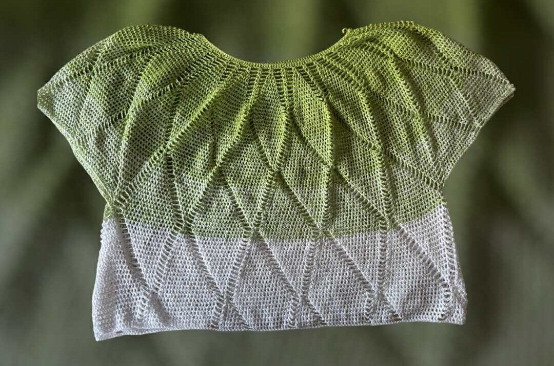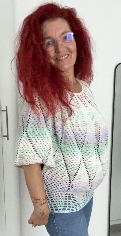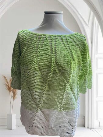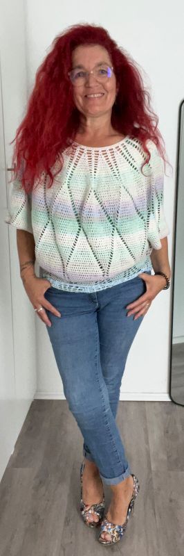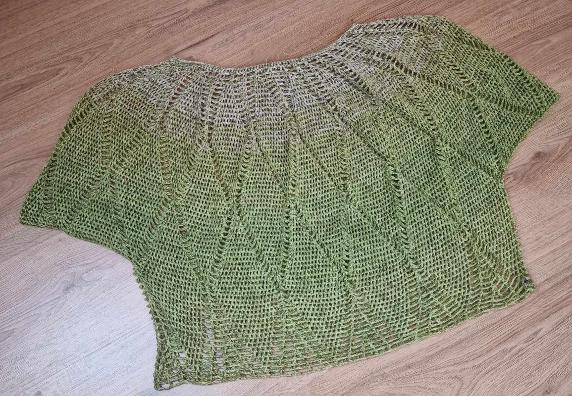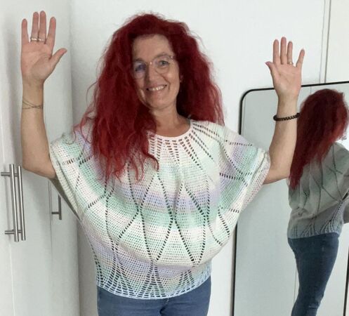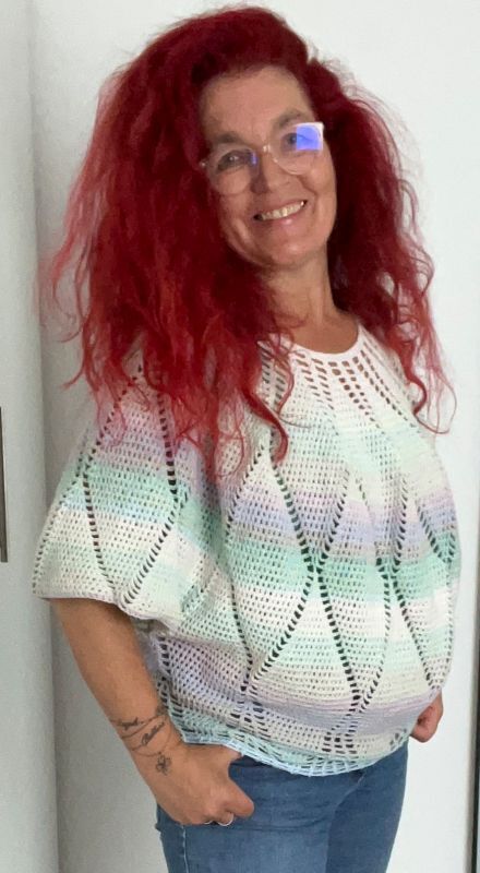 Charlize ist ein weit geschnittenes kurzes Oberteil, dass mit einer Rundpasse von oben nach unten gehäkelt wird.