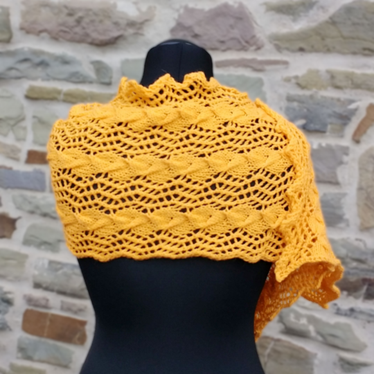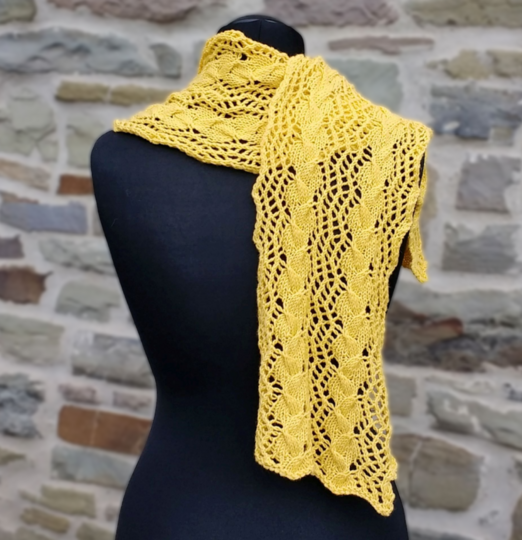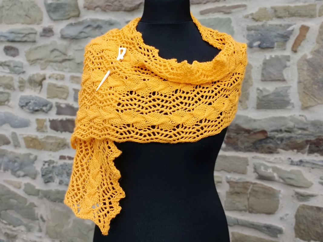 Neben genauen Anweisungen für einen Schal enthält die Anleitung auch genaue Hinweise, wie man eine Stola in beliebiger Breite stricken kann.