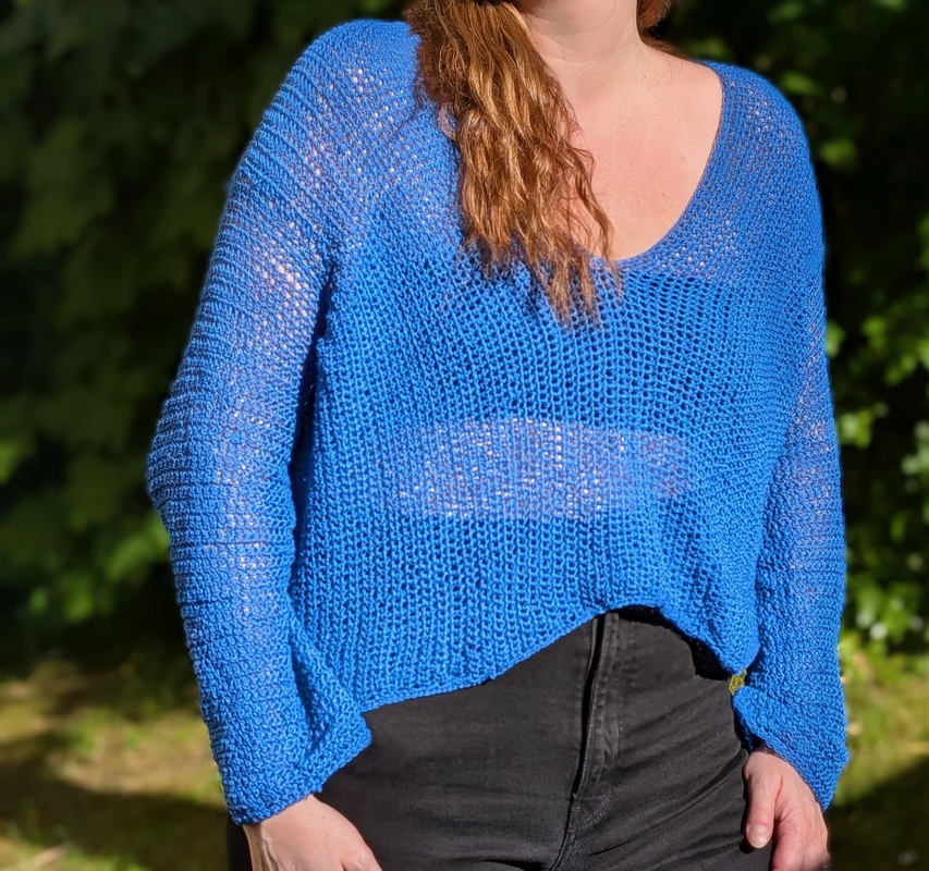 Tauche ein in die Welt des sommerlichen Häkelns mit dieser Anleitung für den Pullover "Azur Breeze"! Dieser locker gehäkelte Pullover in einem leuchtenden Azurblau (oder deiner Wunschfarbe) ist der perfekte Begleiter für kühlere Tage und laue Abende. Das luftige Maschenmuster sorgt für ein angenehmes Tragegefühl und einen lässigen Look.