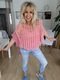 das legere Oversized Shirt im schönen Stäbchenmuster machen den Look perfekt.