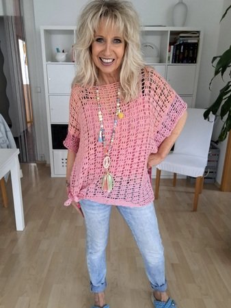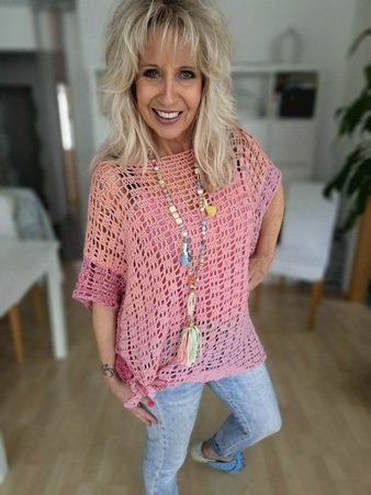 Das Häkeltop hat als Abschluß eine dekorative Bordüre und