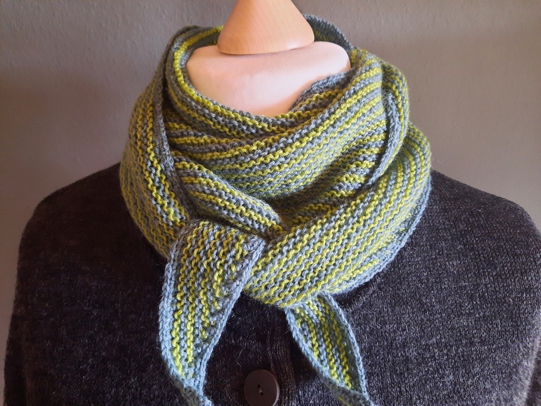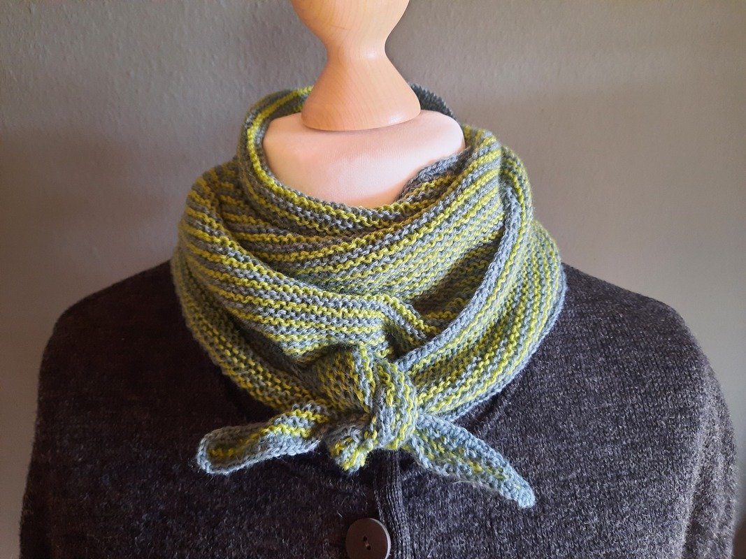 Von solchen Minitüchern kann man nie genug haben. Da sie schnell und einfach zu stricken sind und mit den Streifen und dem Häkelrand (den du auch weglassen kannst) trotzdem was hermachen, lohnt es sich, damit gleich in Serie zu gehen. Angesichts der vielen schönen Sockenwollfarben ist das auch problemlos möglich.