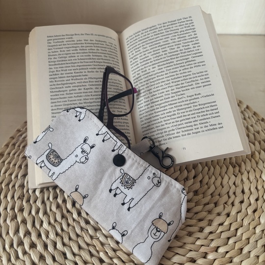 Das Brillenetui ist geeignet für Brillen bis zu einer Breite von 14 cm. Wenn deine Brille breiter ist oder du ein sehr dickes Futter benutzt, drucke das Schnittmuster einfach mit 110% aus. Für Kinderbrillen kannst du es entsprechend verkleinern.