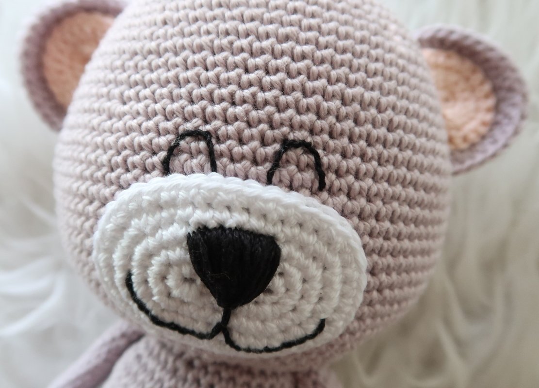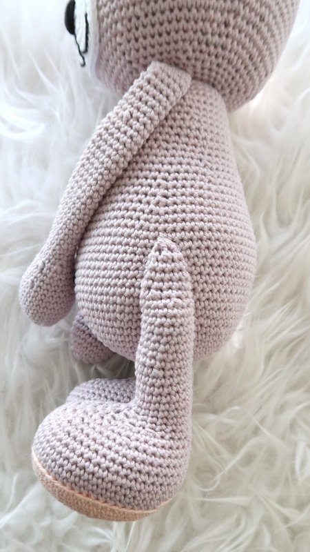 Wenn du mit Baumwolle (125m LL auf 50g) häkelst, wird dein großer Bär ca. 28cm hoch/lang.
