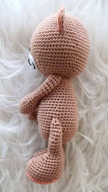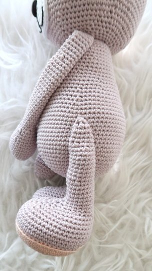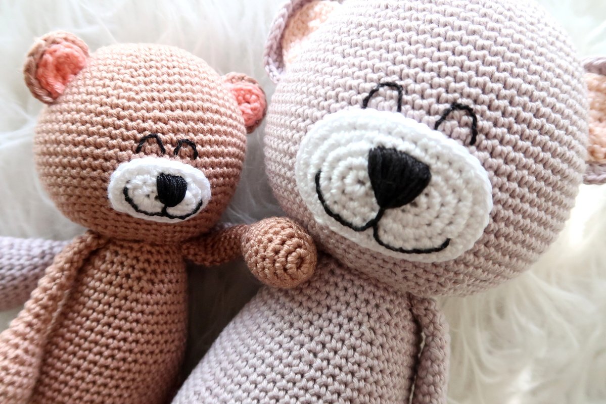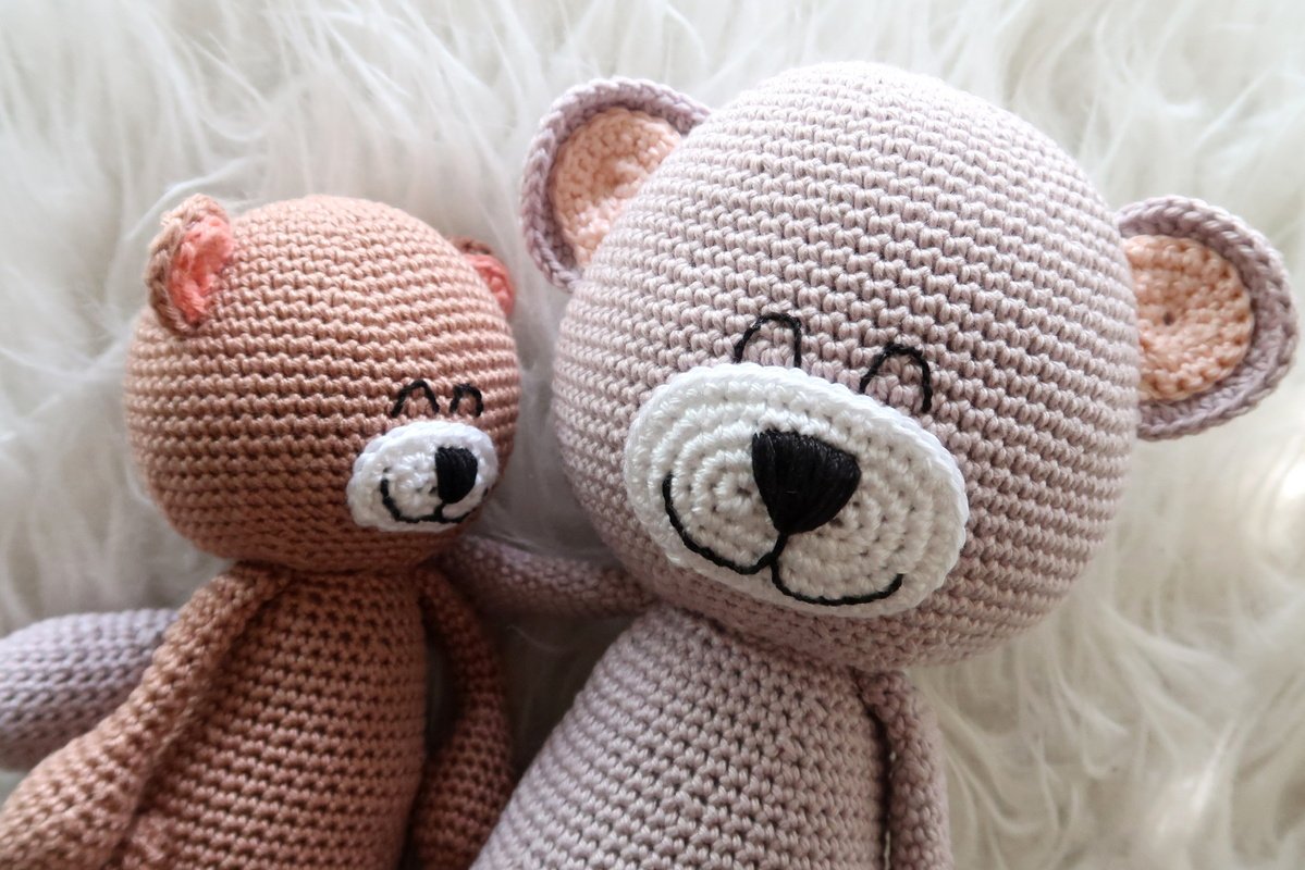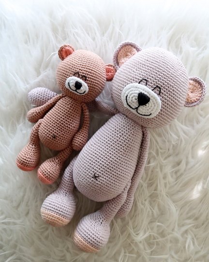 Wenn du mit Baumwolle (125m LL auf 50g) häkelst, wird dein kleiner Bär ca. 19cm hoch/lang.