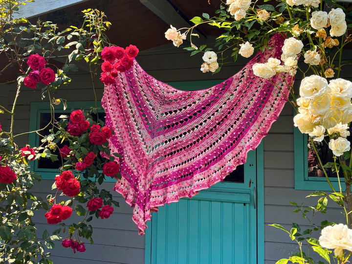 Das Design, wie auch die schriftliche Anleitung des Dreieckstuchs „Rosengarten“ ist Eigentum von Katharina Friedrich (@kathis.maschen.meditation). Die Anleitung oder Teile davon dürfen nicht kopiert, reproduziert, getauscht, weiterverkauft, abgeändert, veröffentlicht oder als eigene Anleitung ausgegeben werden. Die Anleitung ist ausschließlich für den privaten Gebrauch vorgesehen. Fotos von fertigen Tüchern nach dieser Anleitung dürfen unter Hinweis auf die Designerin im Internet veröffentlicht werden. Fertige Tücher dürfen in limitierter Stückzahl unter Hinweis auf die Designerin verkauft werden