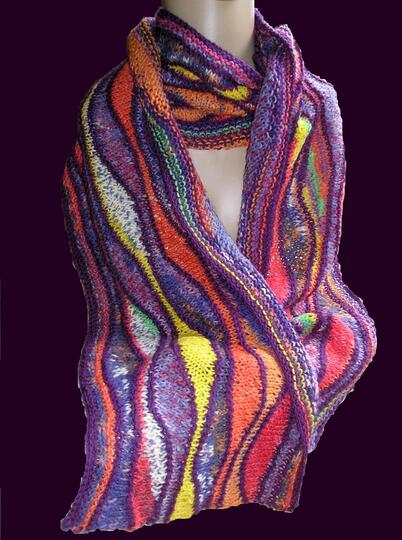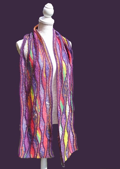 Der Schal wird in Reihen längs gestrickt. Dadurch hat man sehr viele Maschen auf der Nadel.