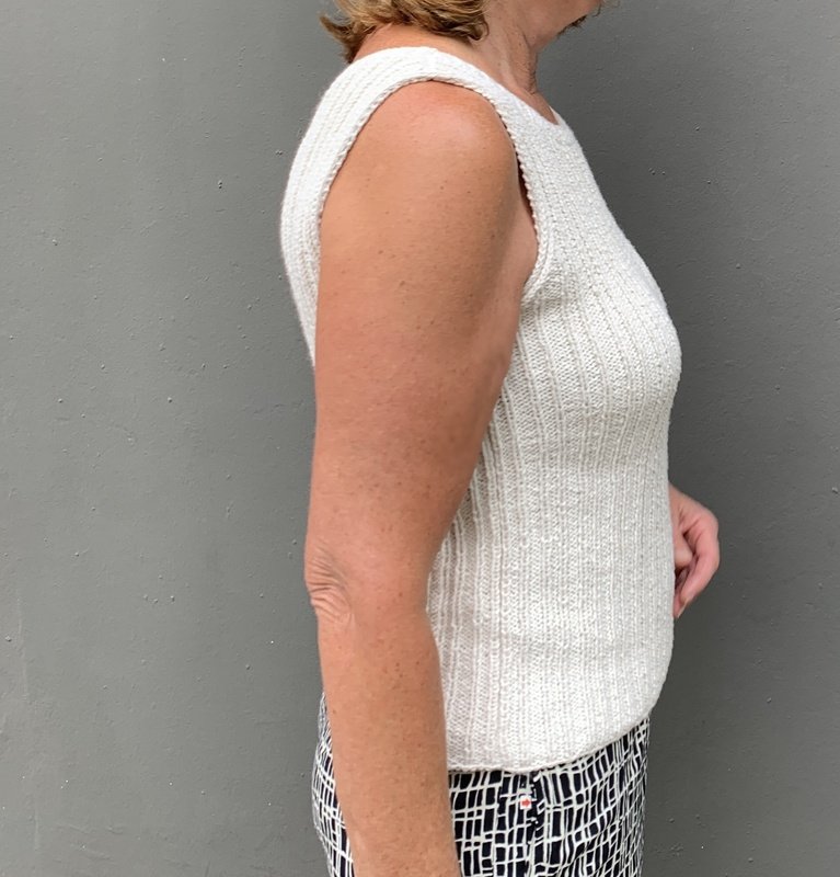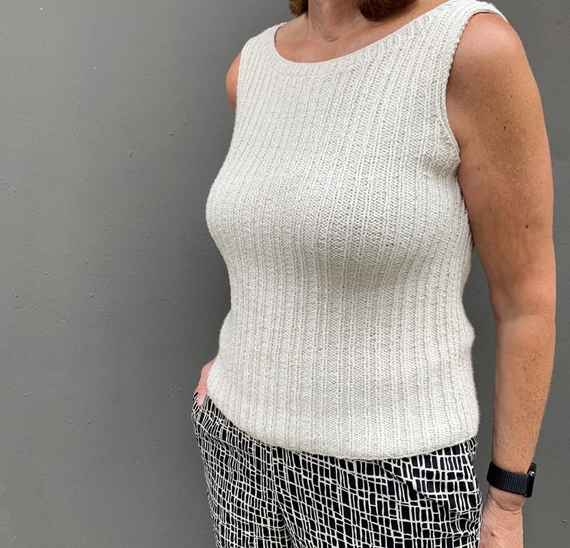 Der gerade Schnitt und der klassische Rundhalsausschnitt machen es vielseitig kombinierbar. Perfekt für Anfänger*innen. Dieses luftige, zeitlos schöne Top wird im einfachen Rippenmuster gestrickt und ist dadurch besonders angenehm zu tragen. Es passt sich weich an die Körperform an und lässt sich vielseitig kombinieren — ob lässig zu Jeans, elegant zum Rock oder als sommerliches Layering-Teil.