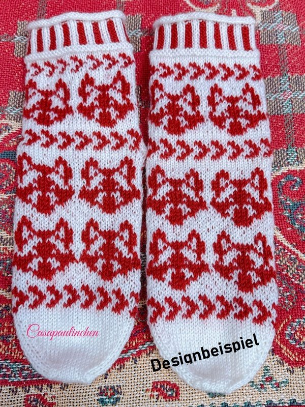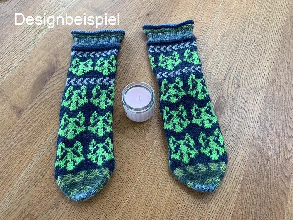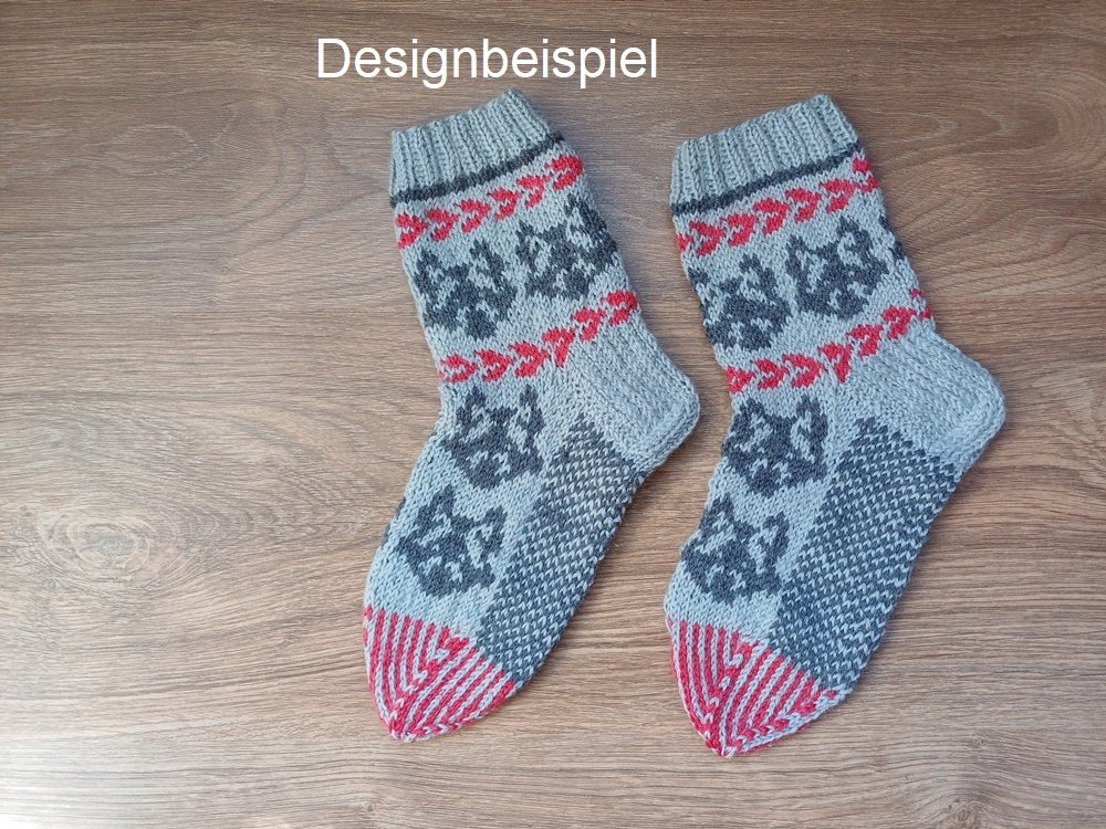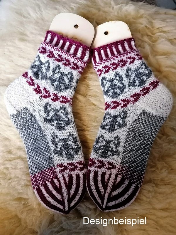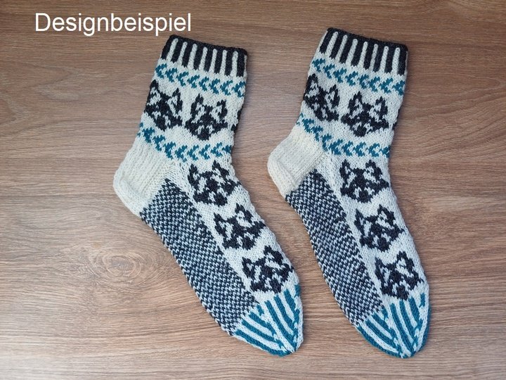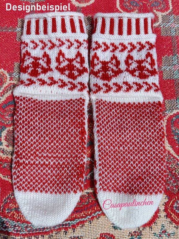 Die Anleitung beinhaltet kein Bündchen, Ferse und Spitze. Die strickst du in deiner bevorzugten Variante.