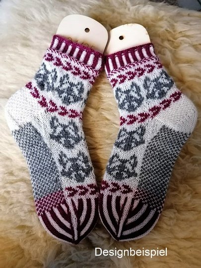 Wenn du Socken stricken kannst und du etwas Erfahrung im mehrfädigen stricken im Fair - Isle - Stil hast, dann ist dieses Muster für dich geeignet.