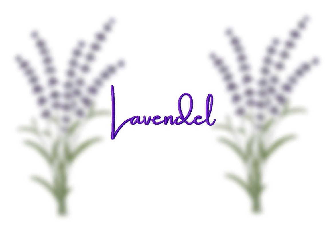 Stickdatei Lavendel mit Schriftzug im Satinstich.