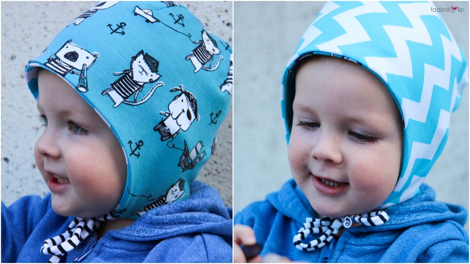 Das E-Book beinhaltet ein Schnittmuster und eine Anleitung, um eine Wendemütze zum Binden zu nähen. Je nach Jahreszeit kann die Mütze aus Jersey, Fleece oder Teddy genäht werden.
