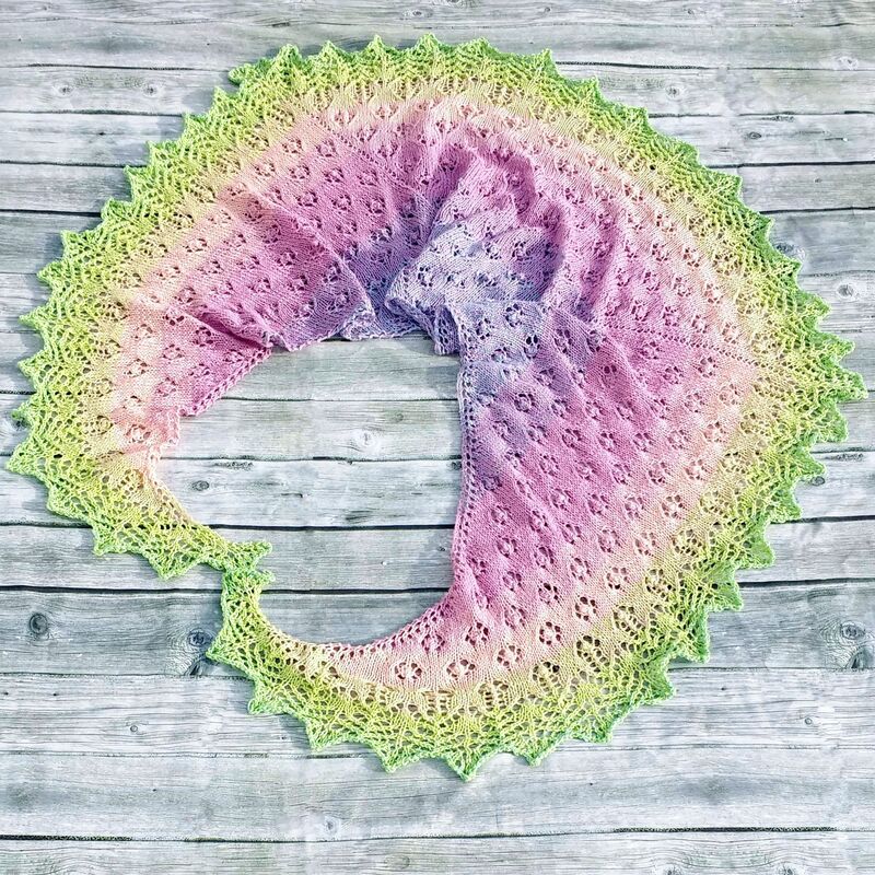 Man kann das Tuch in verschiedenen Größen stricken und mit mehr oder weniger Blumen.