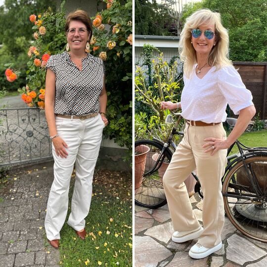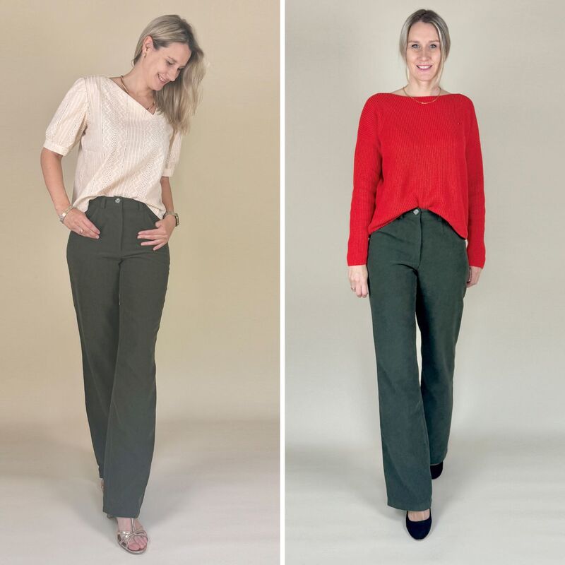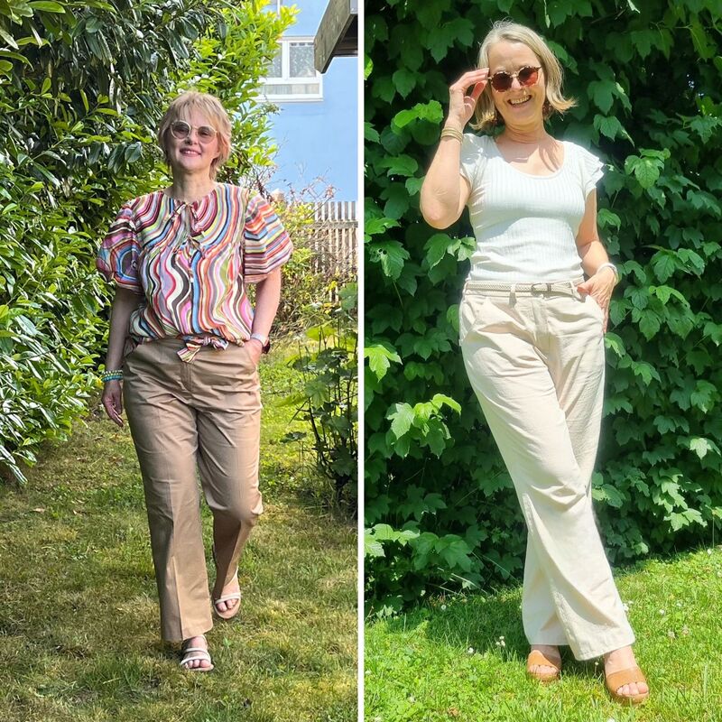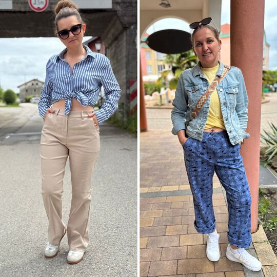 Caro lässt sich ganz unterschiedlich stylen: mit Bluse, Shirt oder Strickpulli – Sneaker, Sandalen oder Boots. Auch mit auffälligen Stoffen oder Farben lässt sich die Hose wunderbar kombinieren. Je nach Stoff entsteht so ein ganz eigener Look: sommerlich mit leichter Baumwolle, robust mit Denim oder herbstlich gemütlich mit Cord.