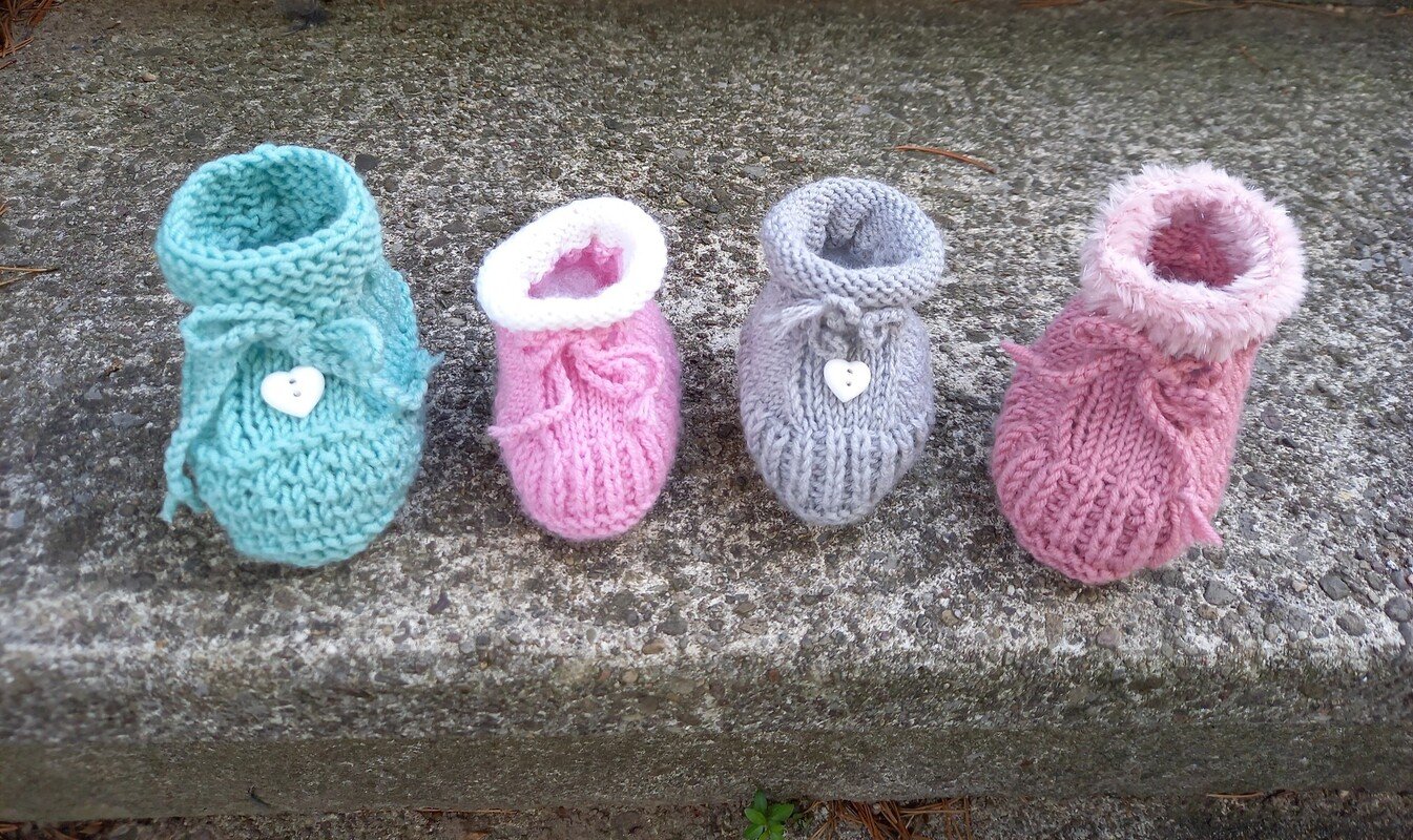 Die Babyschühchen sind in 3 Grössen beschrieben, ca von Frühchen bis etwa 3 Monate. Je nach Wolle und Strickart können sie jedoch verschieden ausfallen. Am besten gleich mehrere stricken!
