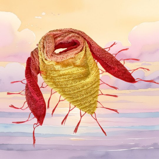 Das Dreieckstuch wird aus der Spitze heraus gearbeitet und entwickelt dabei Reihe für Reihe ein schönes, leichtes Sonnenmuster - perfekt für warme Tage und kühle Sommernächte.