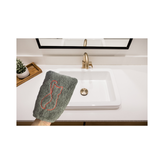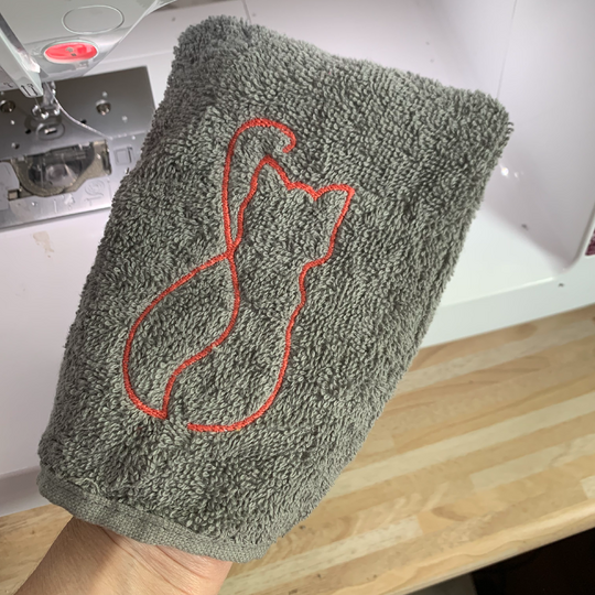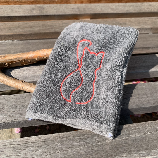 Der Waschlappen hat am Ende eine Breite von 11,5 cm und eine Länge von 16,5 cm.