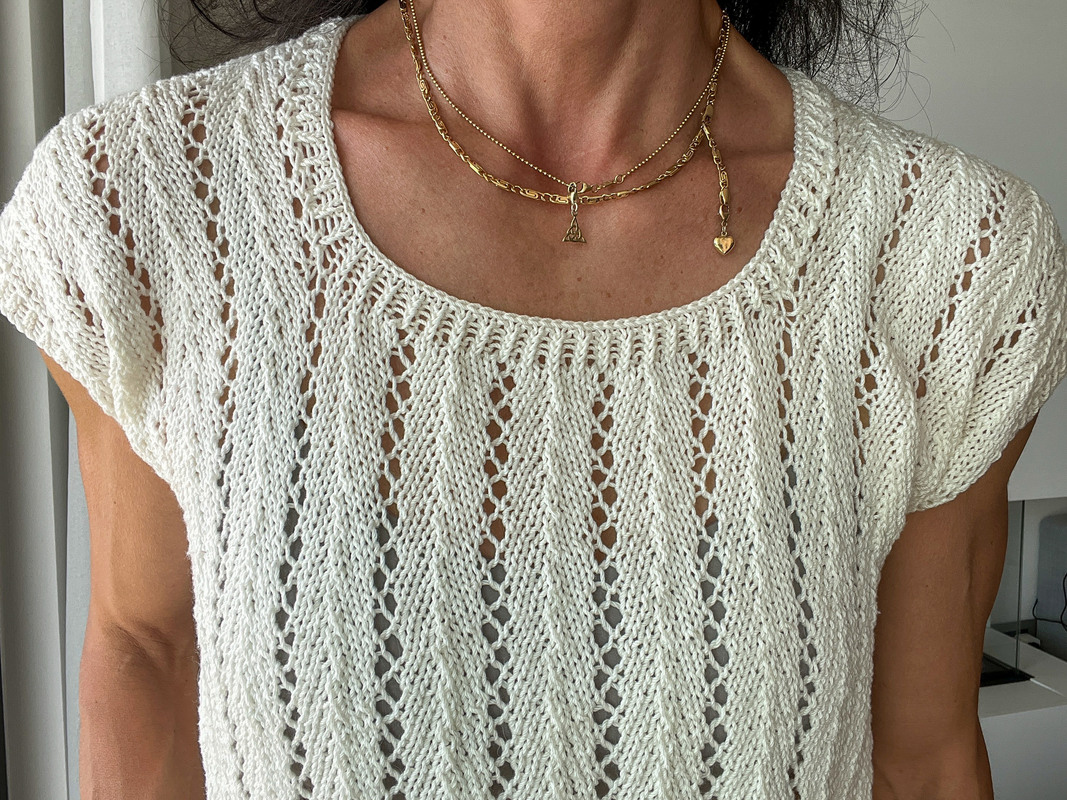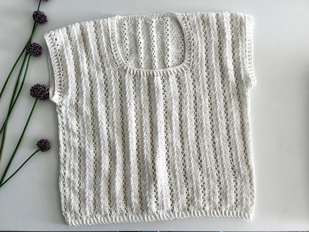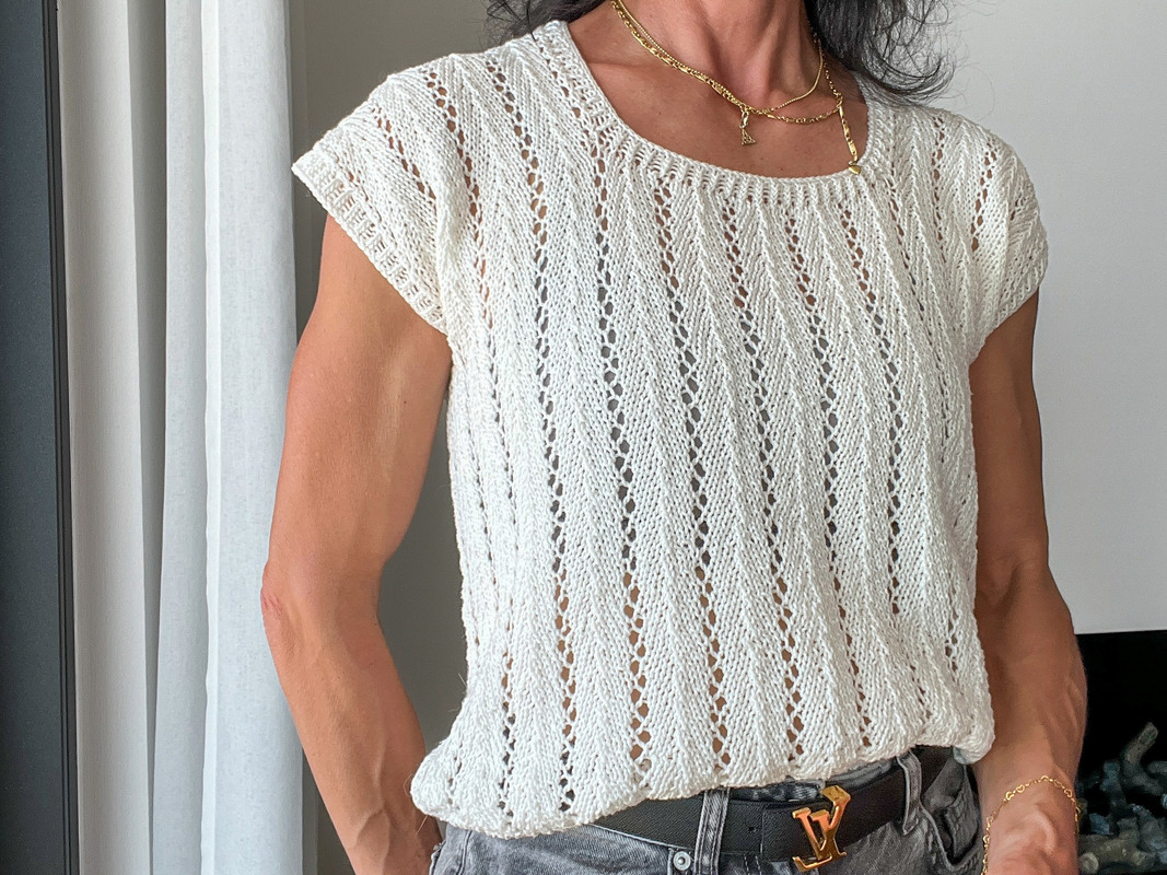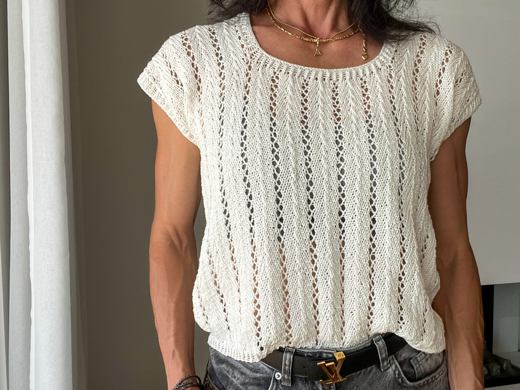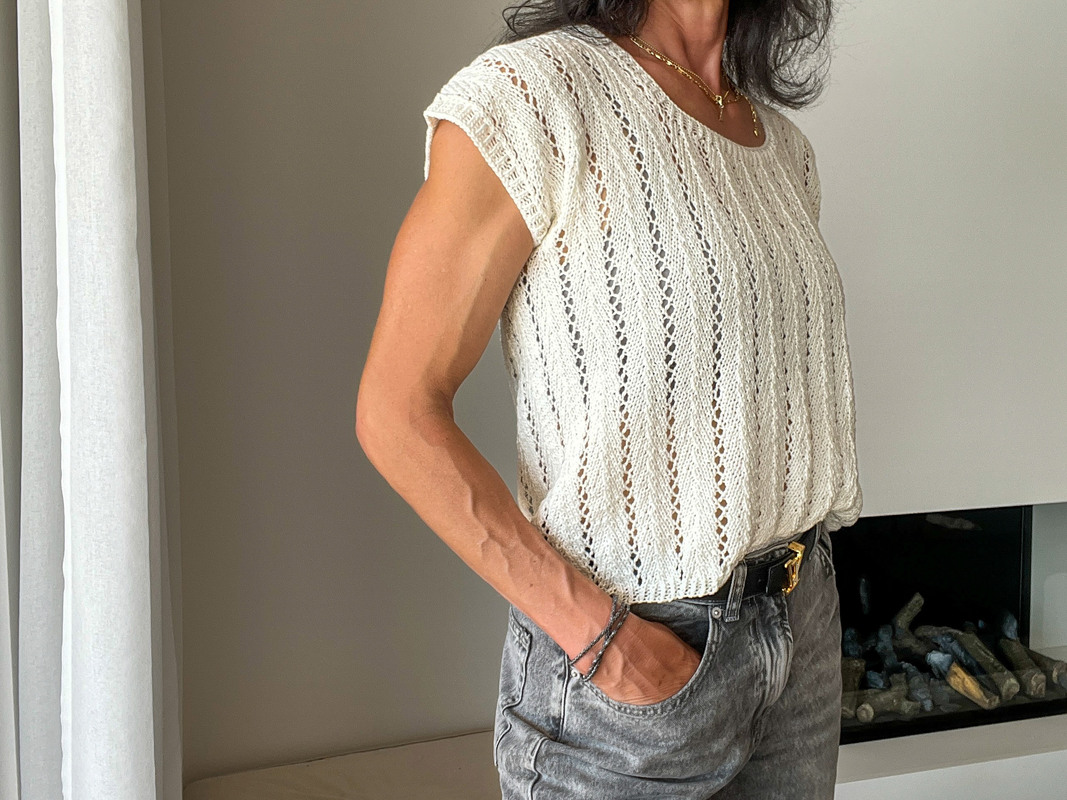 IMGA ist ein luftig, leichtes Top mit zartem Lochmuster und klarer Linienführung. Es wird nahtlos von unten nach oben gearbeitet und überzeugt durch seinen klaren Aufbau. Der Rumpf wird zunächst in Runden bis auf Höhe der Armausschnitte gestrickt, Vorder- und Rückenteil werden getrennt weitergeführt und schließlich an den Schultern wieder vereint – ganz ohne Nähte. IMGA - ein unkompliziertes, elegantes Strickvergnügen mit sommerlicher Leichtigkeit.