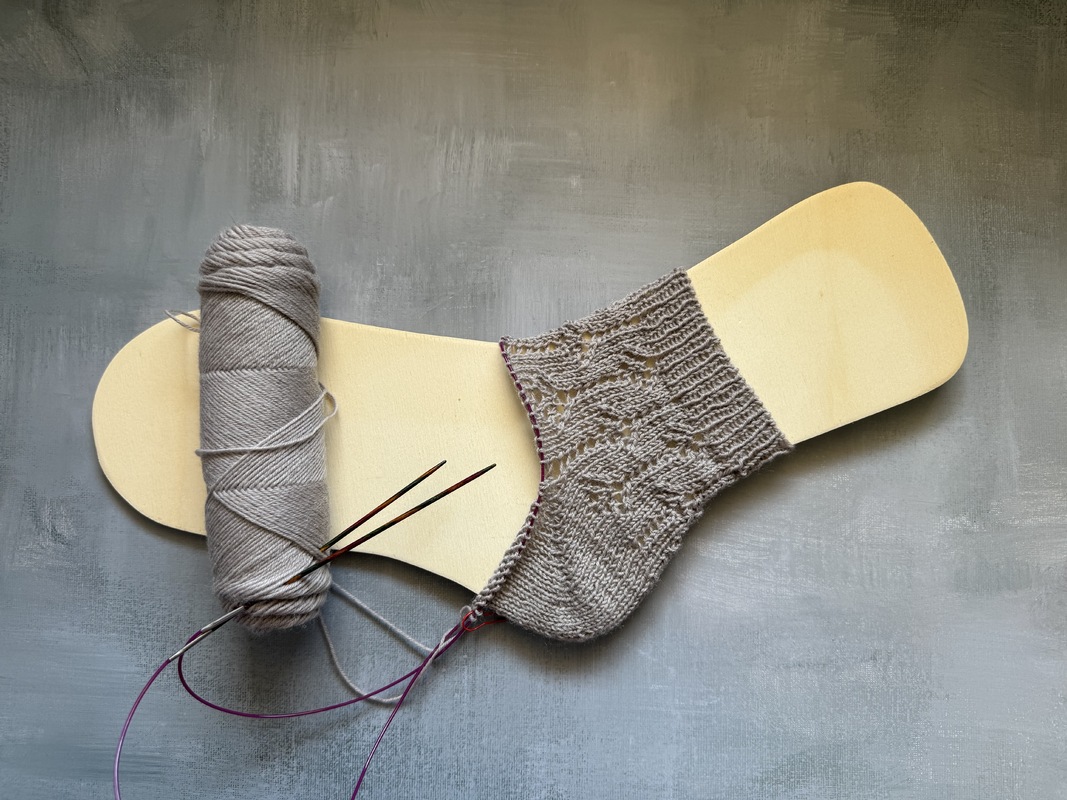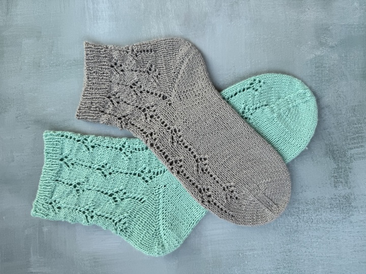 Bei der Anleitung handelt es sich um ein Sockendesign mit leichtem Lacemuster, meinem elastischem Bündchen und einer Bändchenspitze. Die Länge des Schaftes und des Fußes kan individuell angepasst werden.