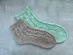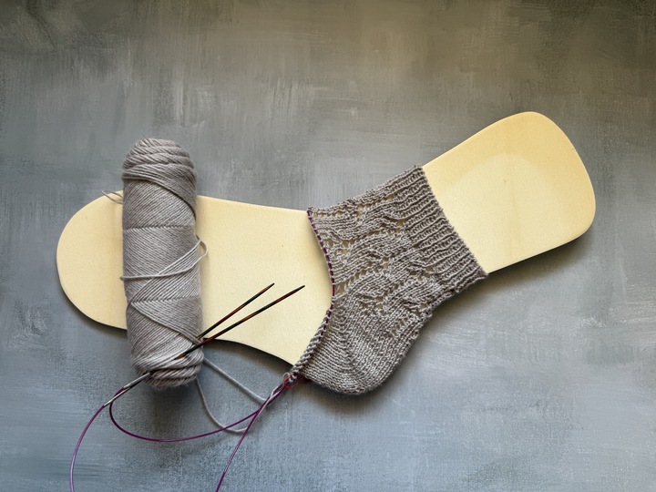 Die Größe, d. h. Länge des Schaftes und des Fußes, kann angepasst werden. Der Mustersatz ist einmal für die Maschenanschlagszahl 60 und einmal für Maschenanschlagszahl 64 ausgeschrieben.