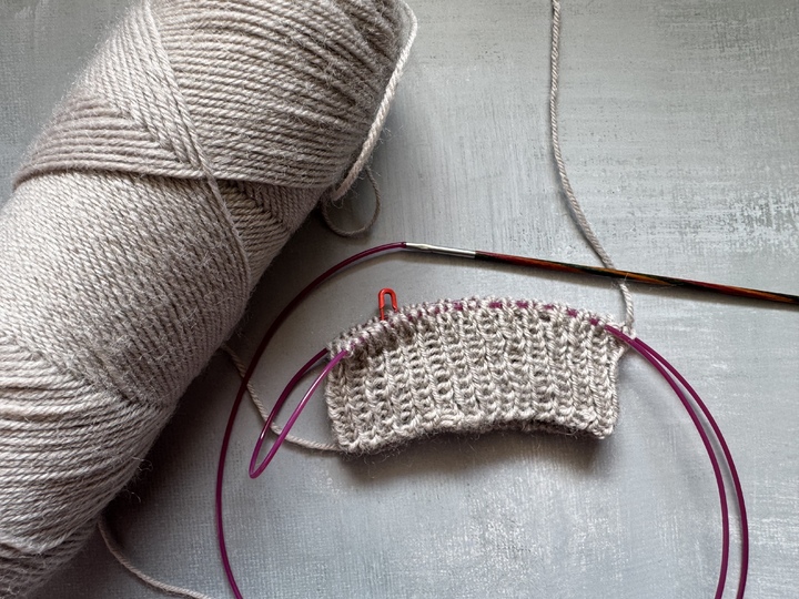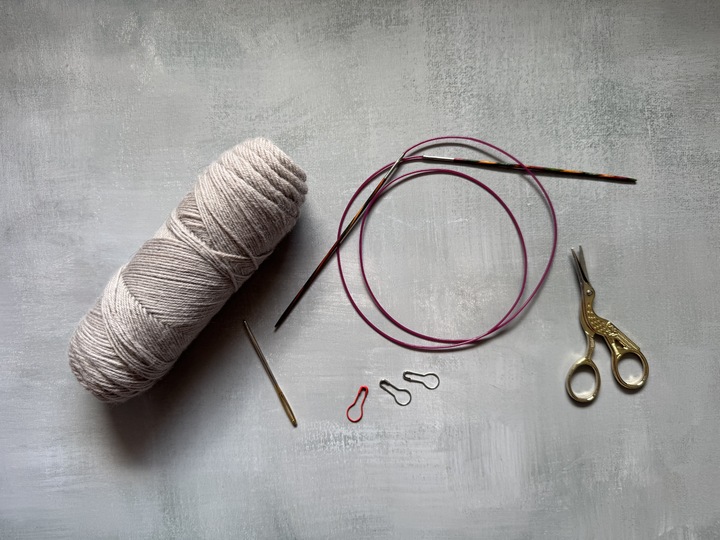 Rundstricknadel (80 cm) 2,0 oder 2,5 (je nach Maschenprobe), optional Nadelspiel