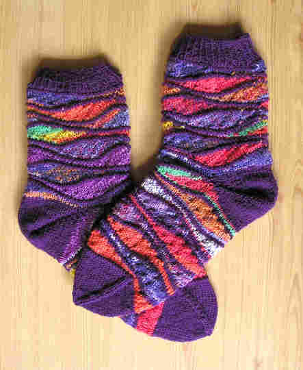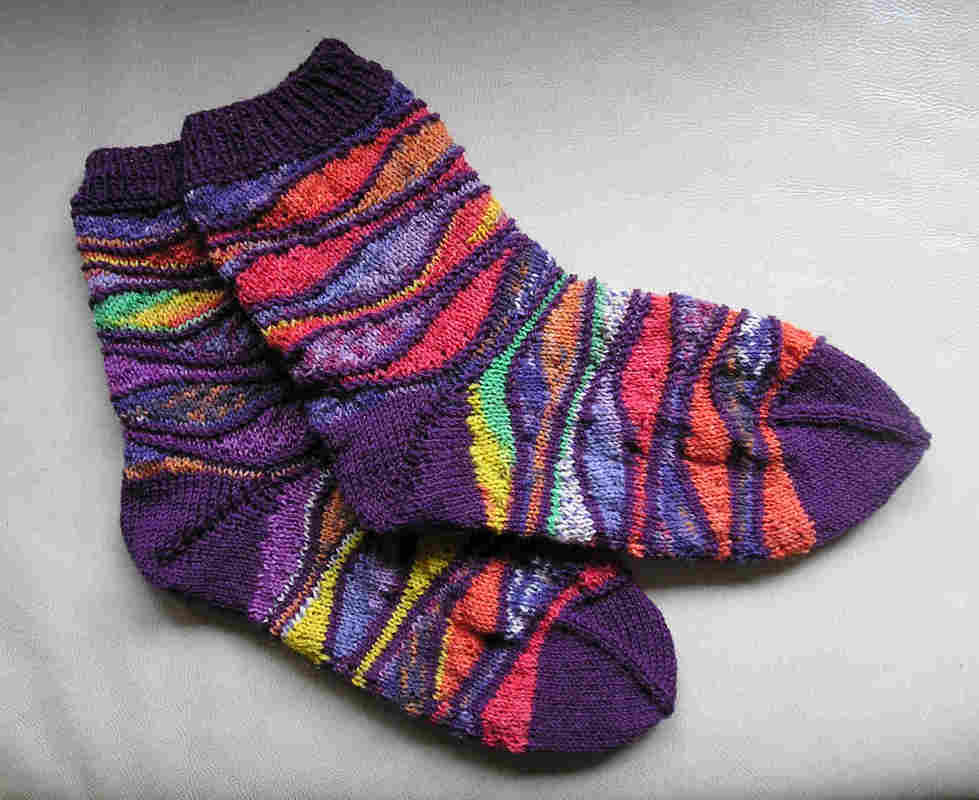 Anleitung zum Stricken der Socken "Abendrot" aus 4-fädiger Sockenwolle mit verkürzten Reihen