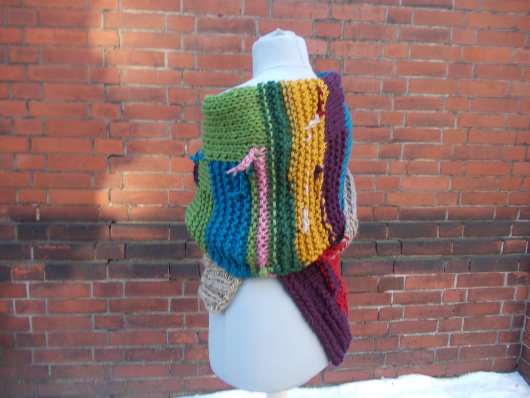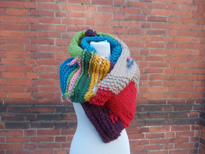Ich finde, so ein Schal aus Wollresten ist eine tolle Idee und ein schönes Geschenk, vielleicht für den Liebsten zum Valentinstag oder zum Geburtstag oder als Mammutaufgabe über das Jahr hindurch oder bis zum nächsten Winter oder aus Baumwollgarn-Resten für den kommenden Frühling oder Sommer?