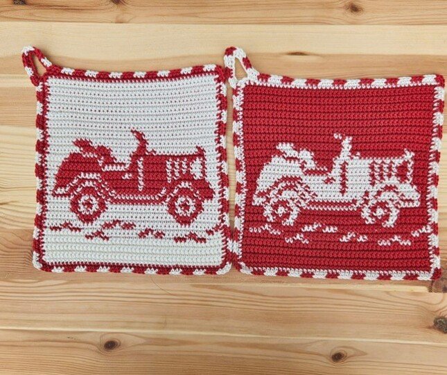 Diese Topflappen sind der Klassiker unter den gehäkelten Topflappen. Sie schützen die Hände nicht nur vor z.B. zu heißen Topfgriffen, sondern sie verschönern auch jede Küche. Gleichzeitig können sie auch als Untersetzer verwendet werden.