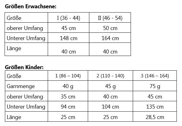 Drachen Cowl Kinder: 40 g (Gr. 1), 45 g (Gr. 2), 75 g (Gr. 3) 4-fach Sockenwolle (420 m/100g)