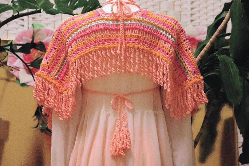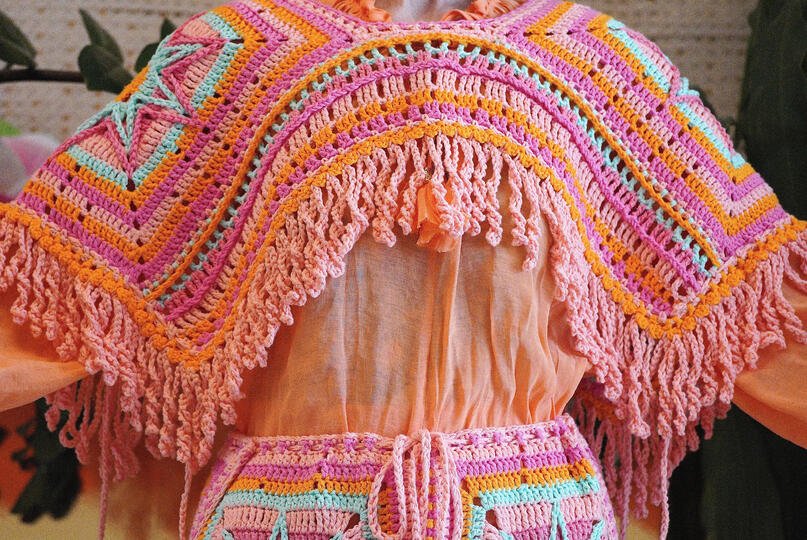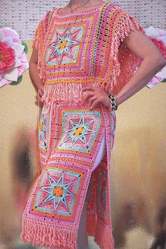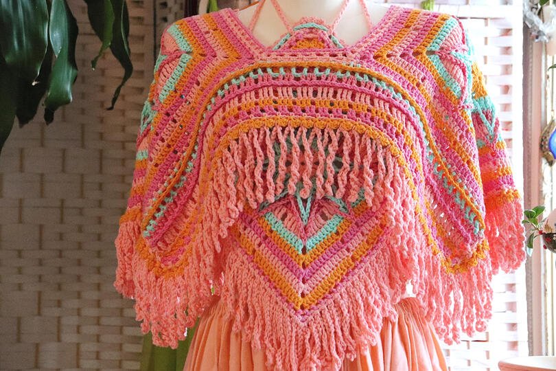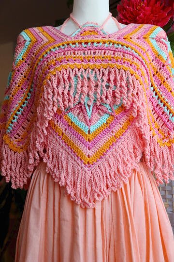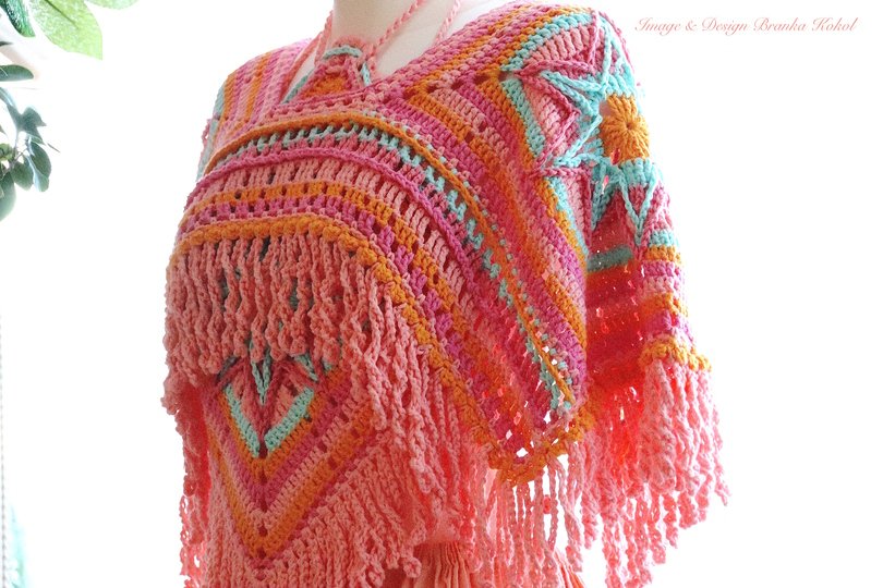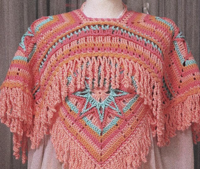 Den Poncho zum darüber tragen den Pullunder als Top. In mehrfarbig gehäkelt etwas