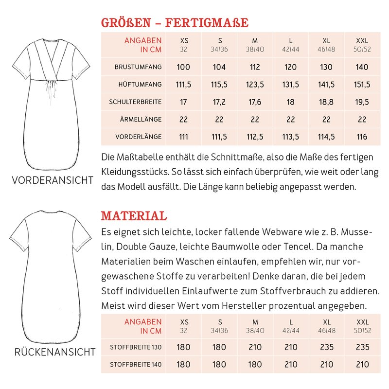 Es eignet sich leichte, locker fallende Webware wie z. B. Musselin, Double Gauze, leichte Baumwolle oder Tencel.