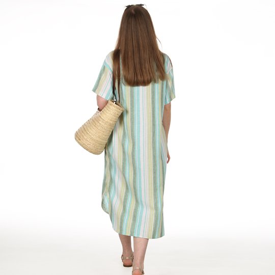 Am Strand willst du dich frei und unbeschwert fühlen – und genau dafür ist FRAU ELLEN wie gemacht! Dieses luftige Tunikakleid begleitet dich mit einem lockeren Schnitt, der dir jede Menge Bewegungsfreiheit schenkt. Der tiefe V-Ausschnitt mit den breiten Blenden und dem angekräuselten Rockteil sorgt für das gewisse Etwas. Die weiten Ärmel und die abgerundeten Schlitze machen es dir superleicht: Nichts engt dich ein, und du kannst FRAU ELLEN im Handumdrehen überwerfen oder wieder ausziehen. Ob schnell über den Bikini oder zum Bummel an der Promenade – dieses Kleid ist dein perfekter Sommerbegleiter!