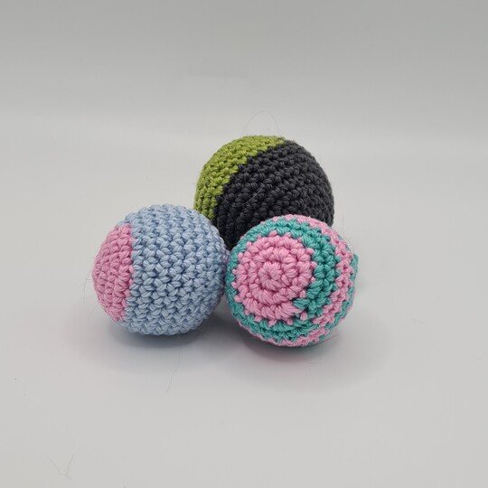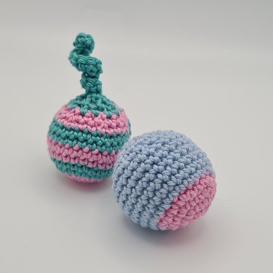 Das Dokument enthält die Anleitung für einen kleinen Ball mit einem Durchmesser vun cica 4,5 cm und eine Anleitung für einen Ball mit einem Durchmesser von circa 5,5 cm.