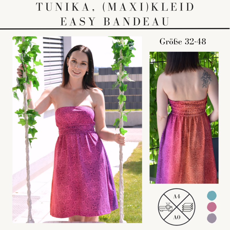 Schnittmuster Damenkleid Easy Bandeau – als Tunika, knielanges oder Maxikleid (Gr. 32–48)