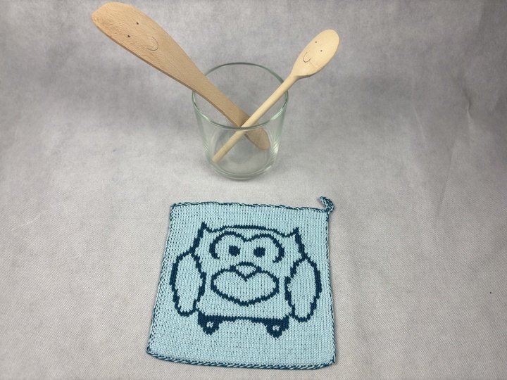 Klausi ist wahrscheinlich die herzigste Eule in meiner Eulensammlung. Er sieht auf diesem Topflappen wirklich gut aus und ist ein tolles Geschenk für einen lieben Menschen oder für Deine eigene Küche. Vielleicht möchtest Du sogar ein Topflappenset stricken? Passende Topflappen findest Du in meinem Shop unter: https://www.crazypatterns.net/de/users/view_collection/3244/eulen-eulen-eulen. Da findest Du auch ein Spar Set mit vier zu einander passenden Topflappen.
