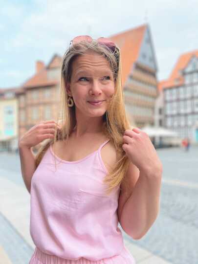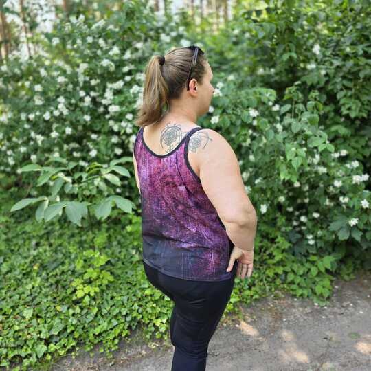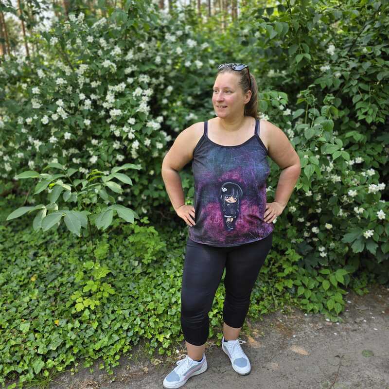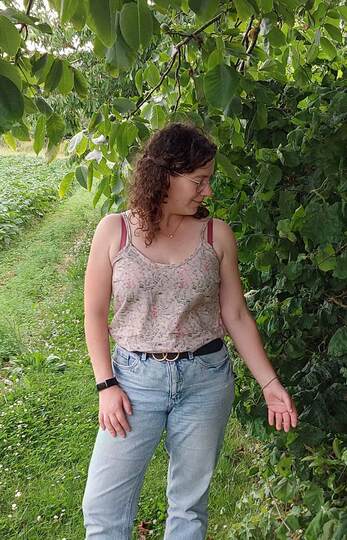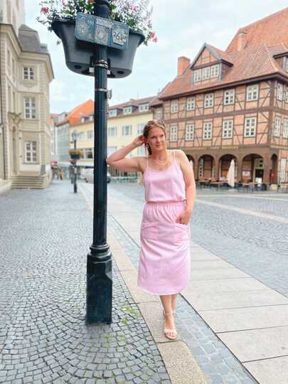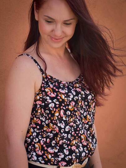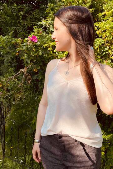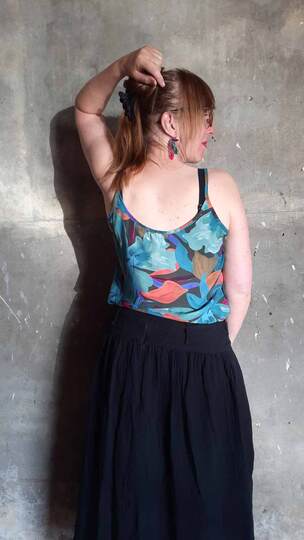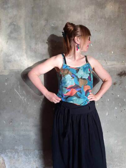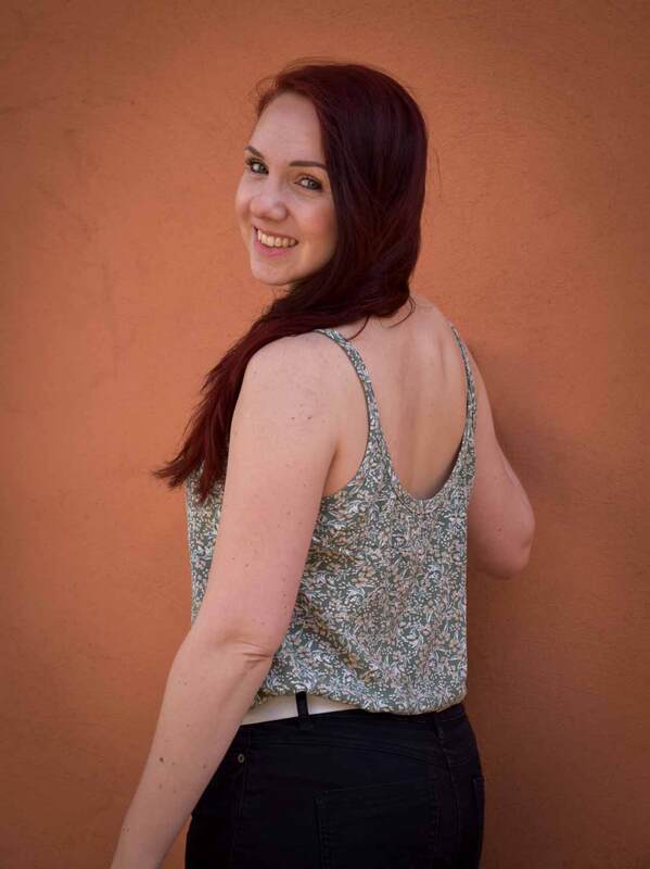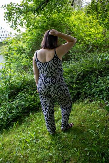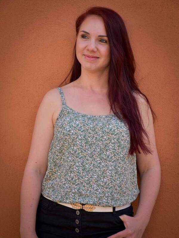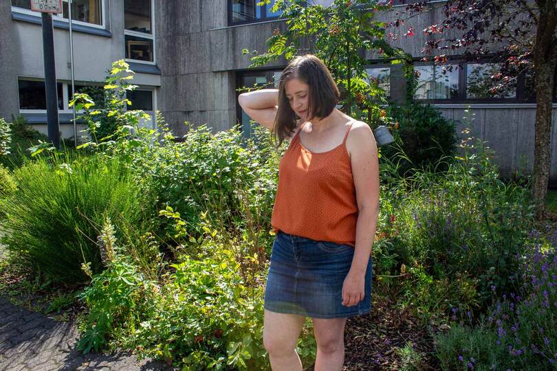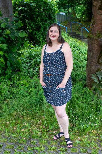Dieser Schnitt für ein Spaghetti Träger Top aus Webware mit rundem Ausschnitt vorne oder V-Ausschnitt und einer optionalen Fake-Knopfleiste, trägt den schönen Namen "Wenn Stille schimmert".