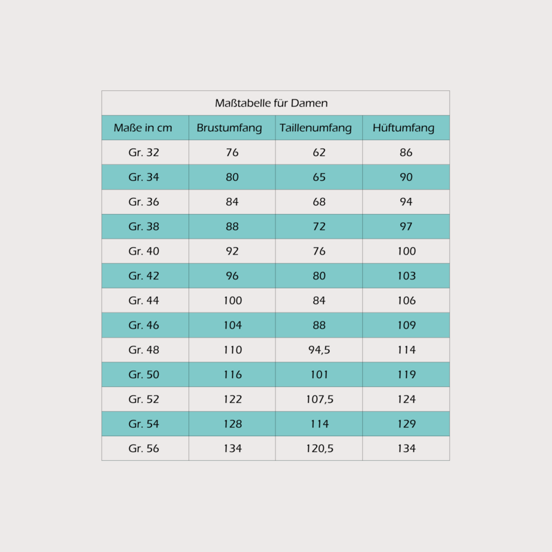 Im Schnittmuster enthalten sind die Damengrößen 32 - 56.