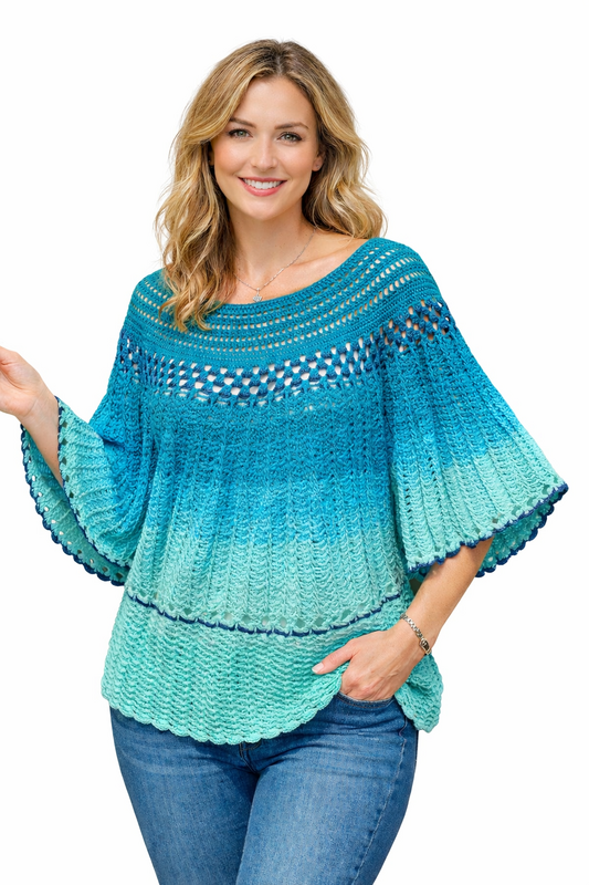 Mit dieser Anleitung kannst du dir einen hübschen Pulli mit Fledermausärmel häkeln.