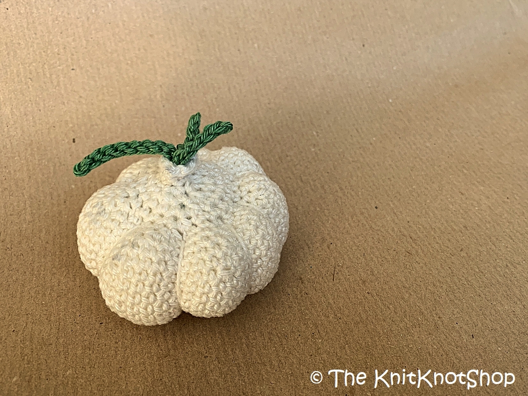 Dieses Material brauchst du: Häkelnadel Stärke 3 mm, Wolle mit ca. 125 cm/50 g Lauflänge (Weiß, Beige und Grün), Füllmaterial, Nadel zum Vernähen der Fäden