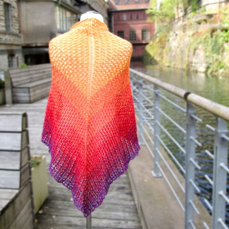 Das Capucina Tuch entsteht aus einem einfachen Grundmuster, das in drei Variationen gestrickt wird.