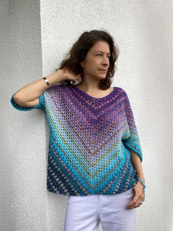 Diese luftige Tunika im klassischen Granny-Muster ist dein neues Lieblingsprojekt für warme (und kühlere) Tage. Sie wird ganz entspannt von oben nach unten gehäkelt – kein kompliziertes Rechnen, kein Stress mit Größen: Du bestimmst einfach selbst, wie lang, weit oder bunt sie werden soll (oder Du hältst Dich ganz einfach an eine der vorgeschlagenen Größen). Der gerade Abschluss sorgt für einen bequemen Look, das Granny-Muster für den perfekten Boho-Vibe. Ob am Strand, beim Stadtbummel oder einfach zuhause auf der Terrasse – mit dieser lockeren Tunika bist du stylisch und "cool" unterwegs. Ideal für Häkel-Fans mit ein bisschen Erfahrung und Lust auf ein entspanntes Sommerprojekt!