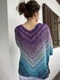 4-fädiger verzwirnter Bobbel mit folgendem Farbverlauf: lila – hellblau – türkis – dunkelblau, z. B. YarnArt „Flowers“ | Farbe: 254 | 55 % Baumwolle, 45 % Polyacryl | 250 g = 1.000 m pro Bobbel