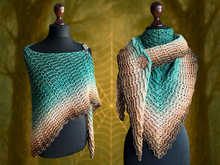 Geführt von den Fäden der Zeit und dem leisen Flüstern der Weberin vom Morgensee Thara, lädt dich dieses Tuch ein, den Pfad der Magie zu betreten – Masche für Masche, in stiller Verbindung mit dem Herz des Waldes.