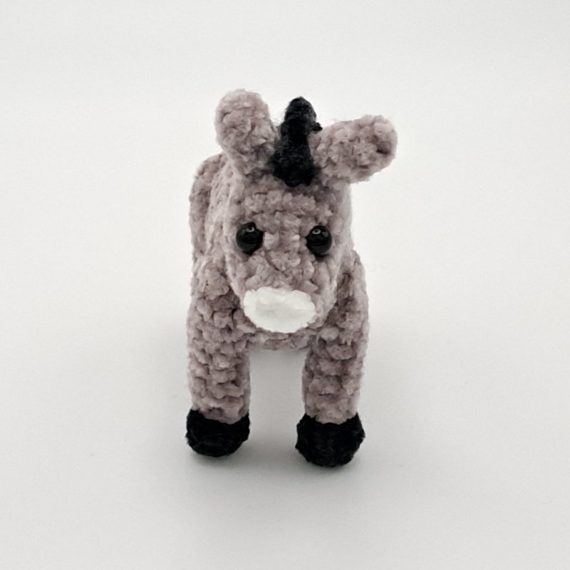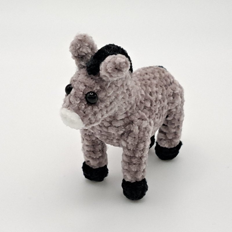 Das ist eine Häkelanleitung für einen kleinen Esel.