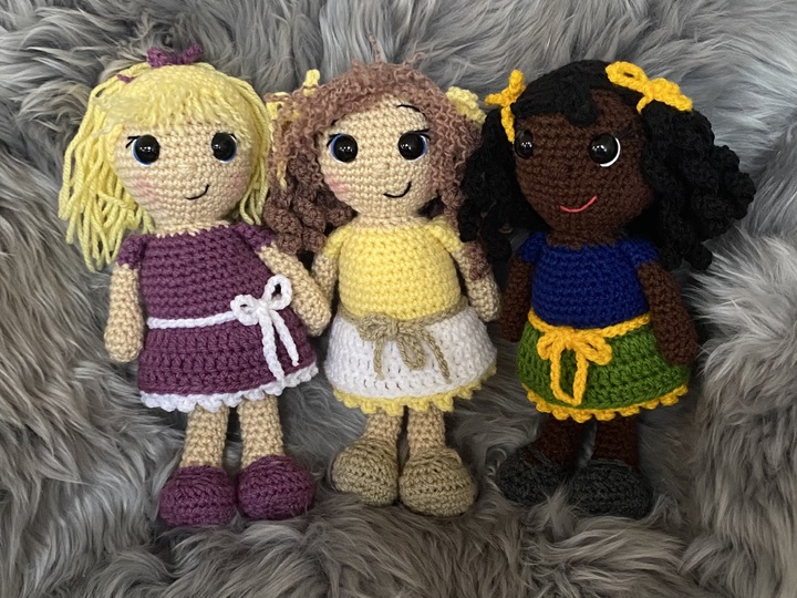 Mit dieser Häkelanleitung kannst du dir ein einfaches Püppchen häkeln, das du selber auf verschiedene Weise gestalten kannst. Haare, Farben, Kleiderfarben und Frisur ist ganz deinen Wünschen überlassen.