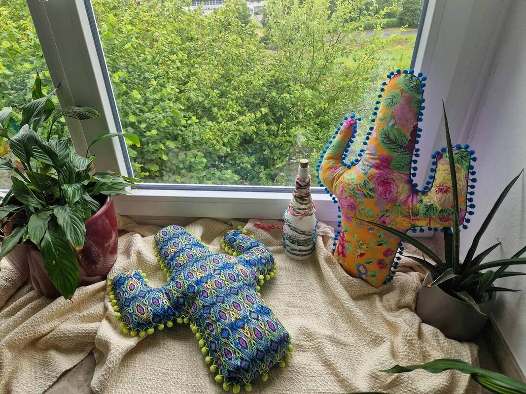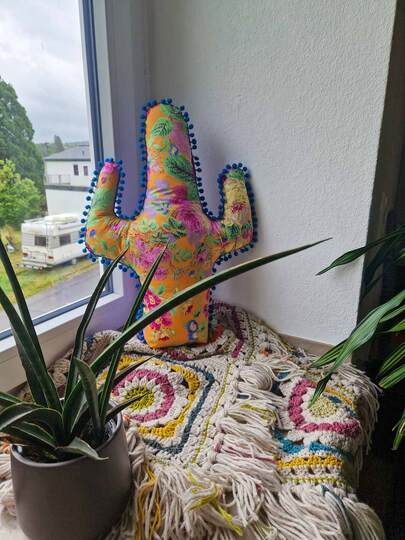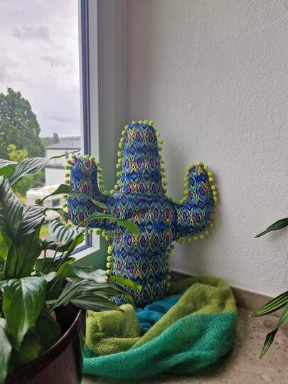 Dieser Schnitt für ein Deko Kissen in Kakteenform aus Stoff und Füllwatte macht dein Leben bunter. Es lässt sich auch super weiter verschönern duch selbst hergestellte Blüten, beplottet, bestickt usw.. Ohne Bommeln ein tolles Projekt für Nähanfänger, mit Bommeln leicht weiter fortgeschritten. Das Dekokissen eignet sich ideal als Geschenk für Kakteenliebhaber mit oder ohne grünen Daumen.