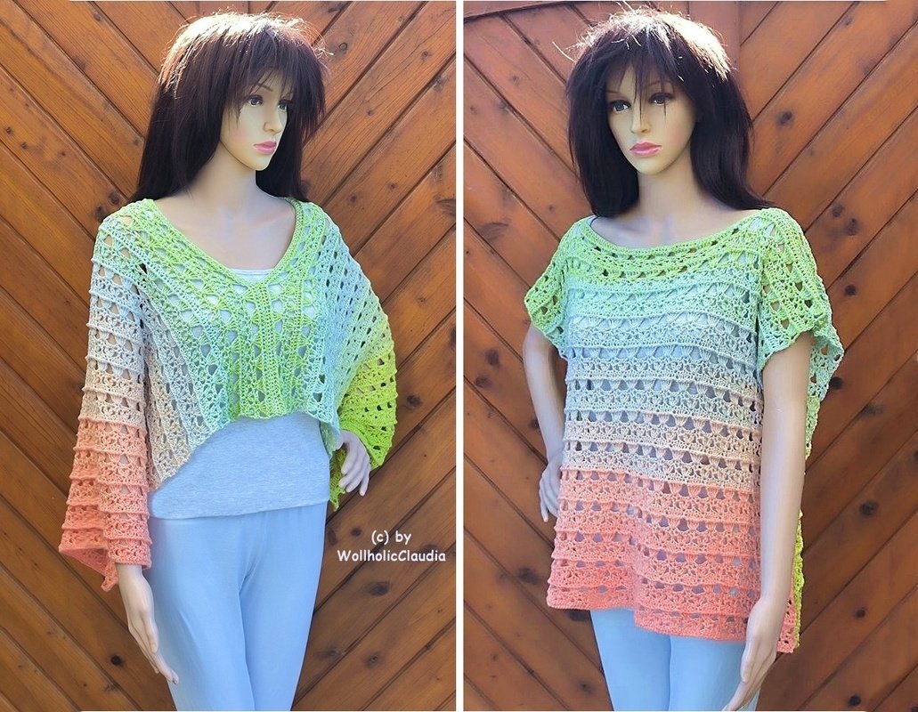 Mit der Häkelanleitung „Karibik“ kannst du wahlweise einen luftigen Poncho oder ein sommerliches Shirt anfertigen. Das einfache Muster ist besonders anfängergeeignet und kommt ohne RVO (Raglan von oben) aus, was den Einstieg erleichtert. Ideal für warme Tage bietet dieses Projekt nicht nur Spaß beim Häkeln, sondern auch ein vielseitiges Kleidungsstück für deine Sommergarderobe.