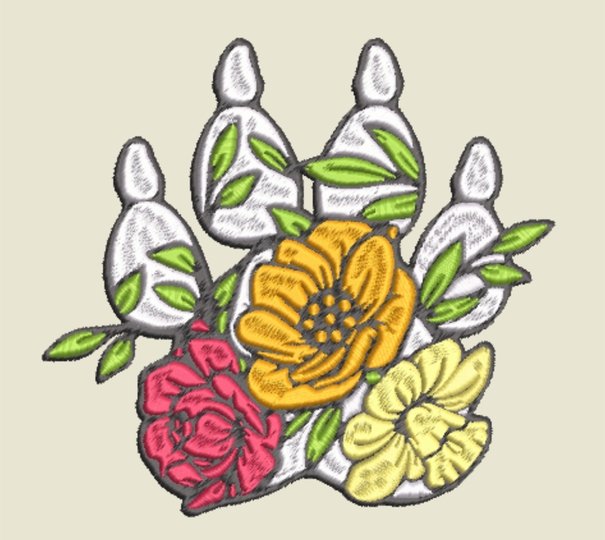 Stickdatei florale Hundepfote mit Kralle in 6 Größen, Maschinenstickdatei