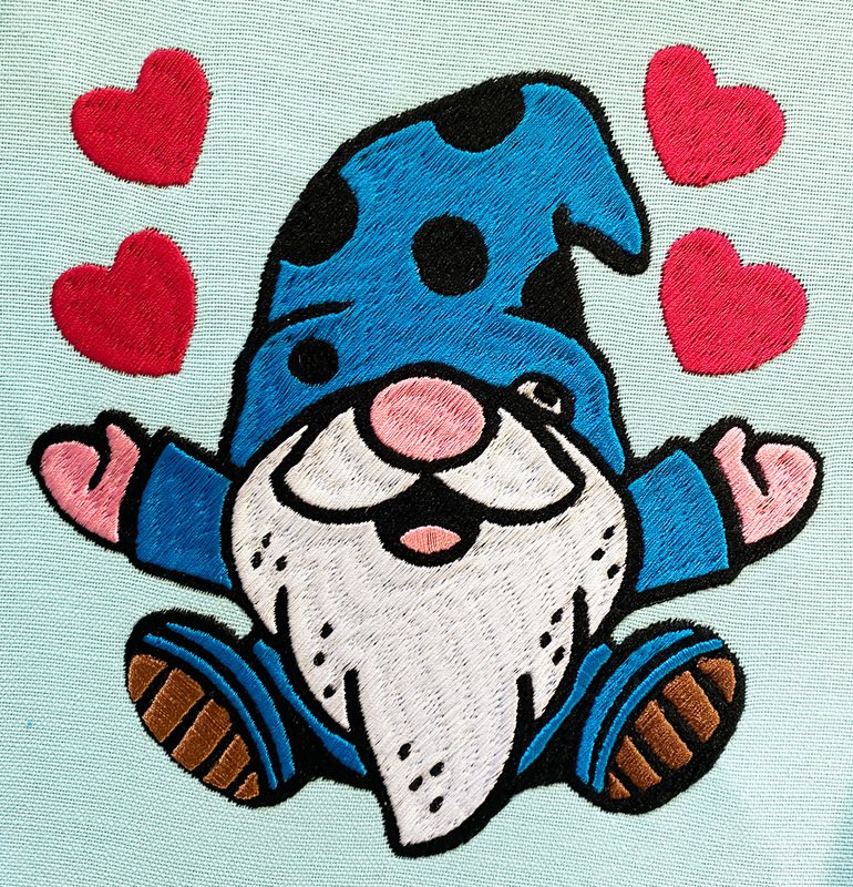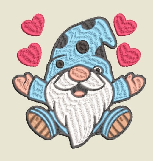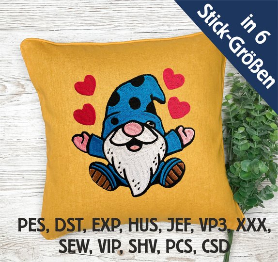 Stickdatei Gnom mit Herzen in 6 Größen, Maschinenstickdatei