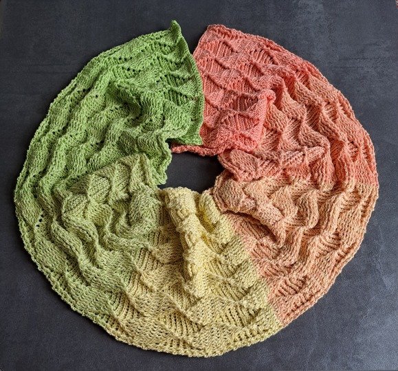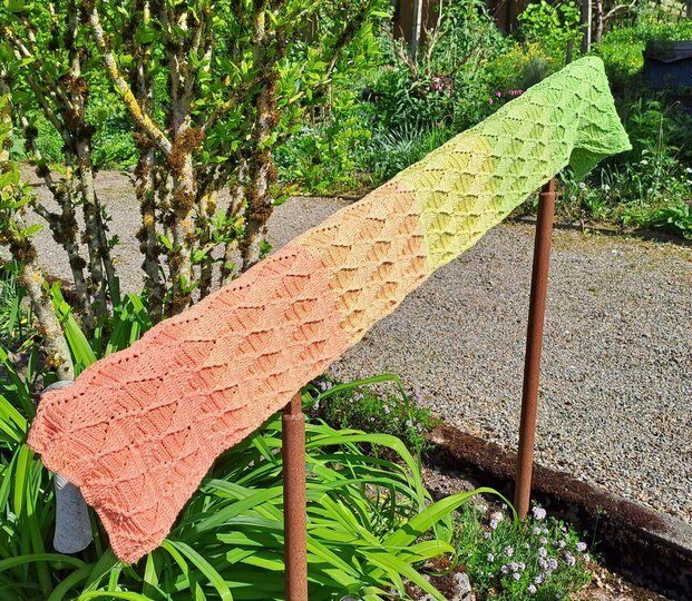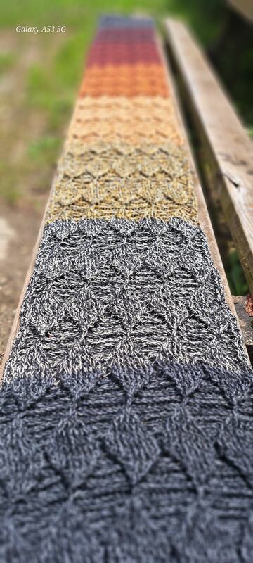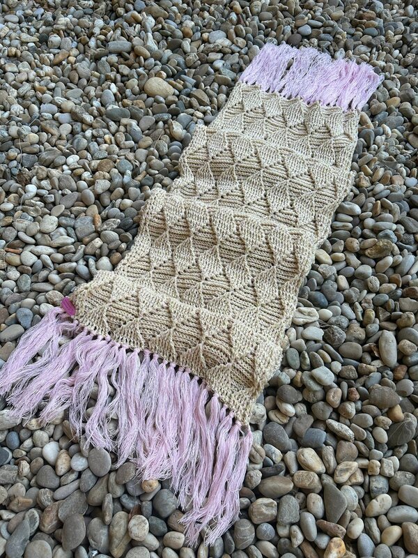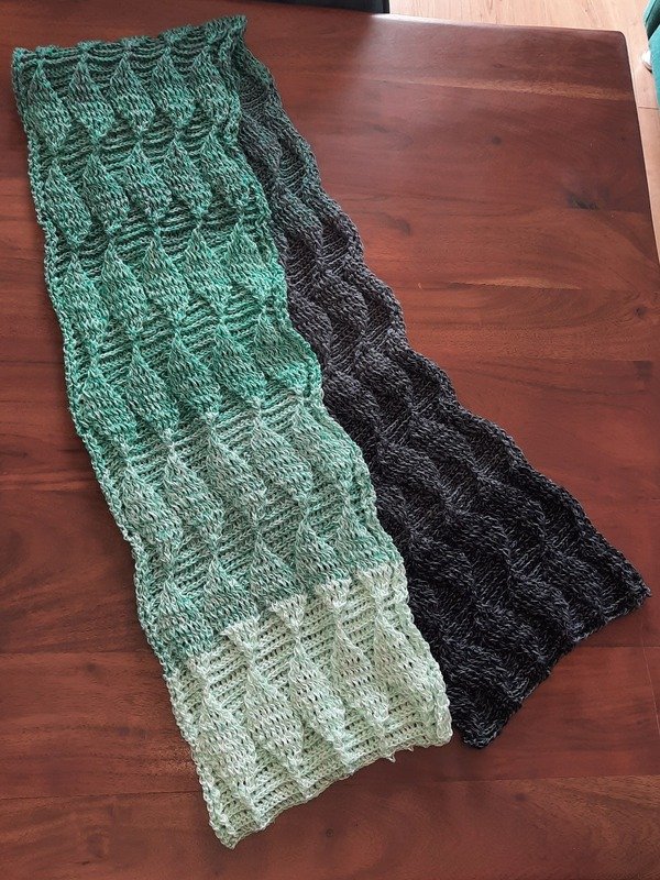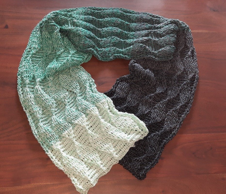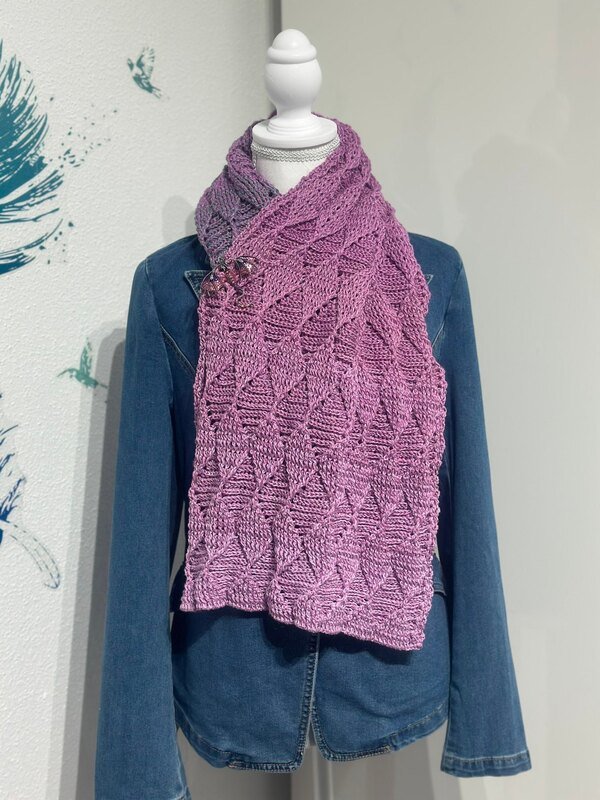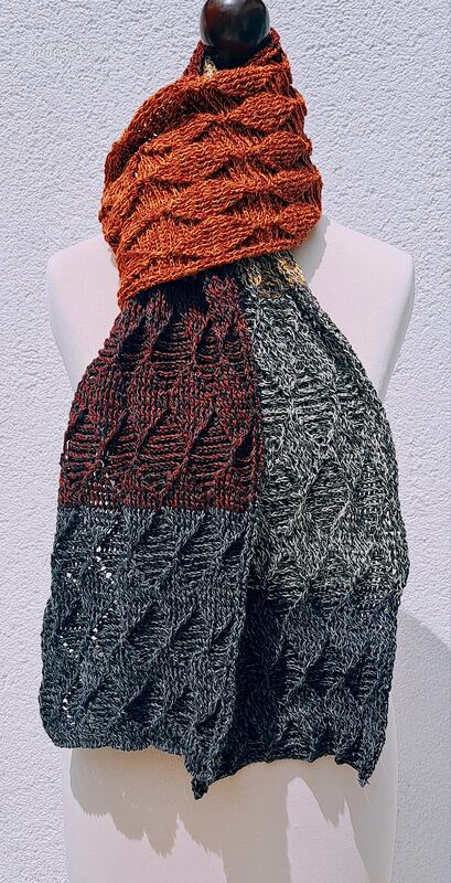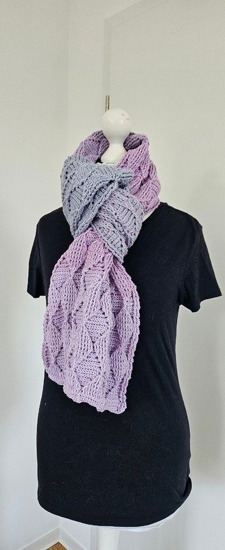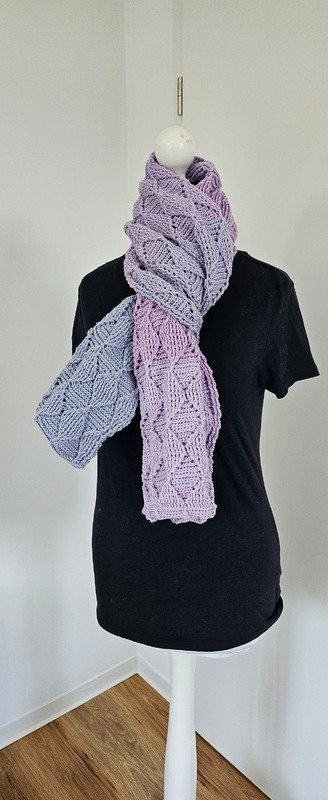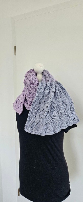 Der Schal am Titelbild hat folgende Abmessungen: 160 x 30 cm.